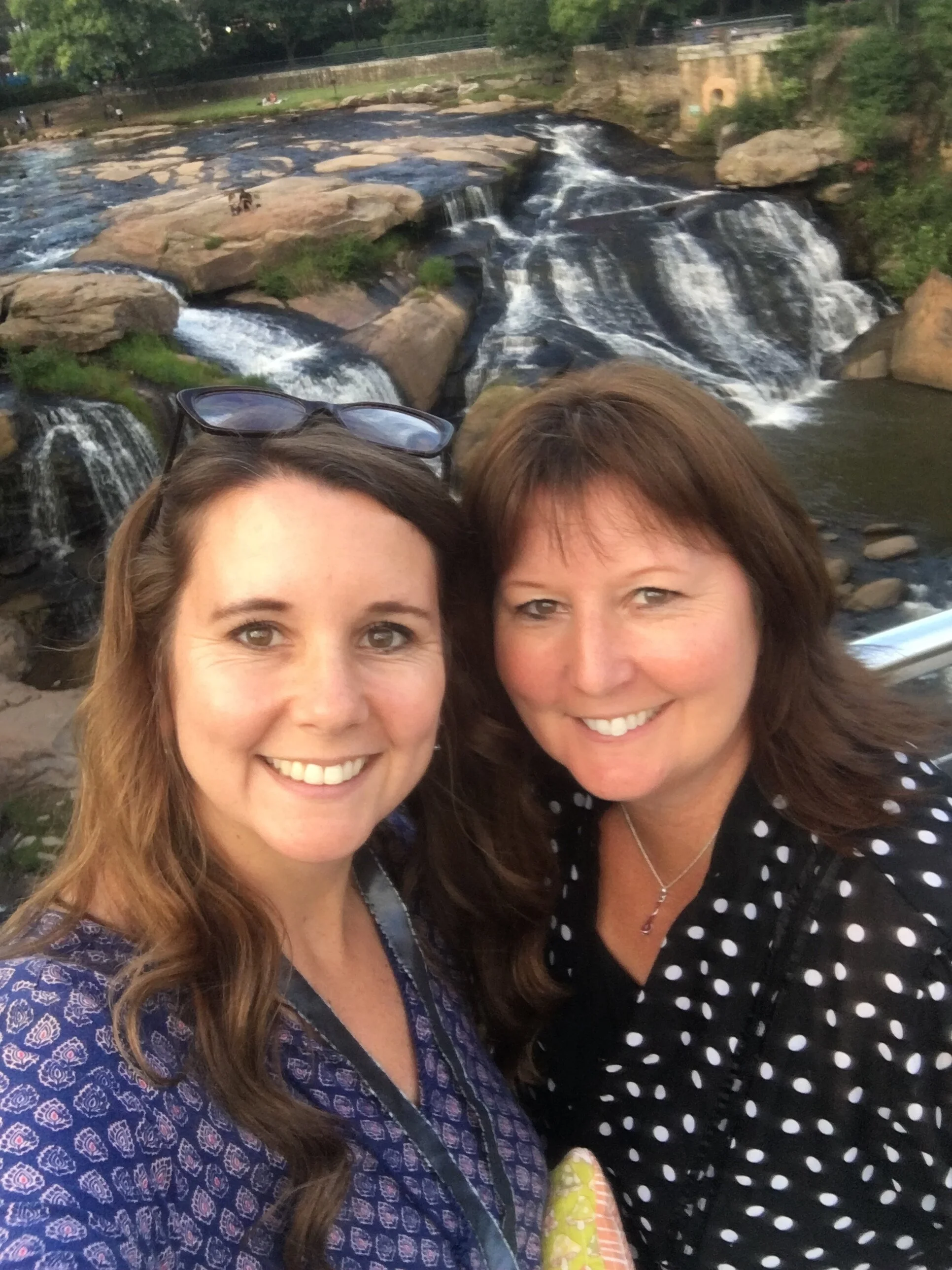 This is my sister Michelle and I. We flew into Greenville, South Carolina and then drove an hour and a half to Black Mountain, North Carolina. We lived in South Carolina when we were younger (Navy kids), and enjoyed exploring in downtown Greenville.