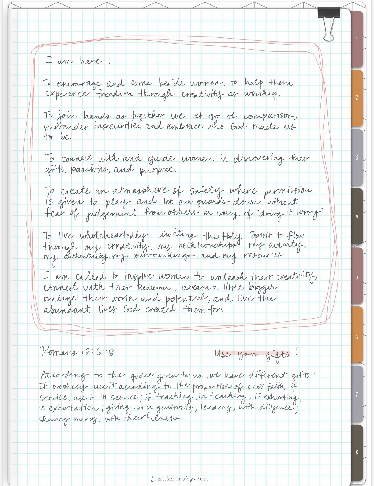 Through journaling, I realized that my vision, to connect with and encourage women, is the core purpose for each of my pursuits.